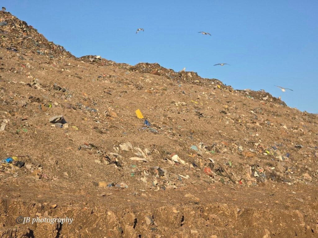 Today, locals from the group visiting the site reported a massive pile of sand and inert material mixed with waste left uncovered, attracting thousands of seagulls. The birds were seen feasting openly on the exposed cell while site workers continued to push material around with heavy machinery, attempting to compress the waste.