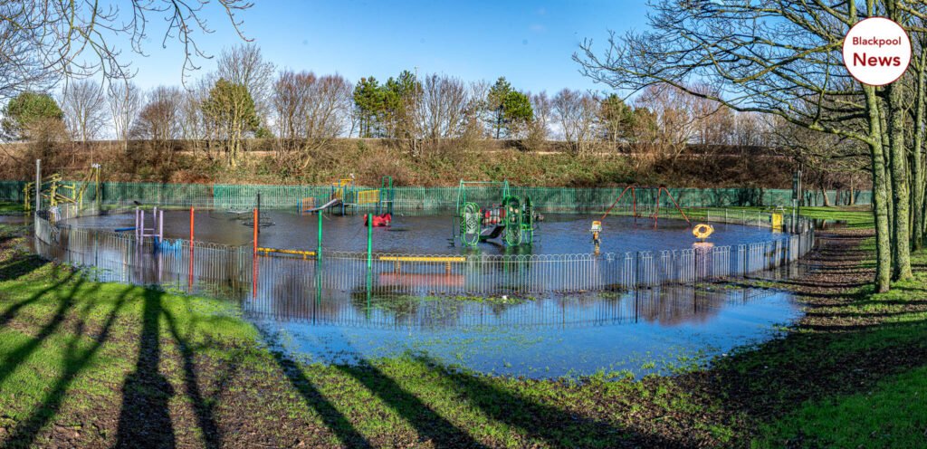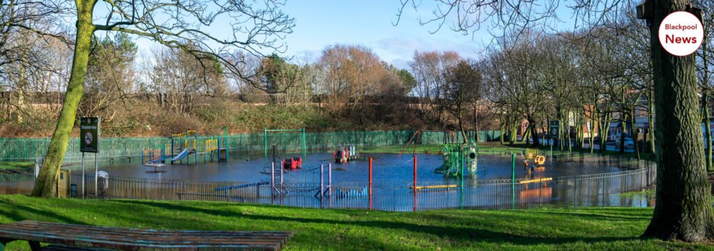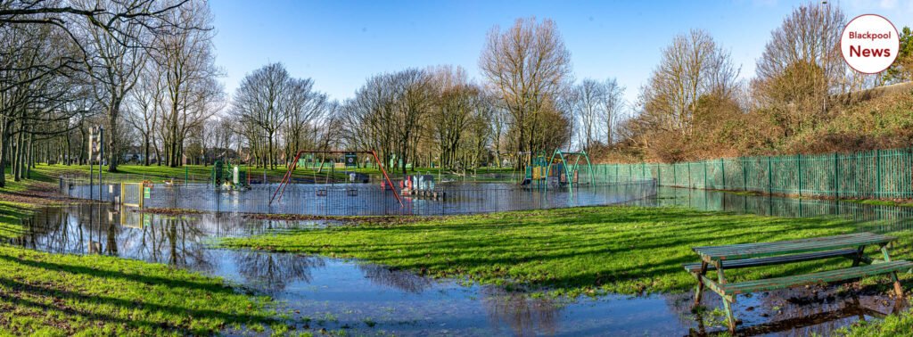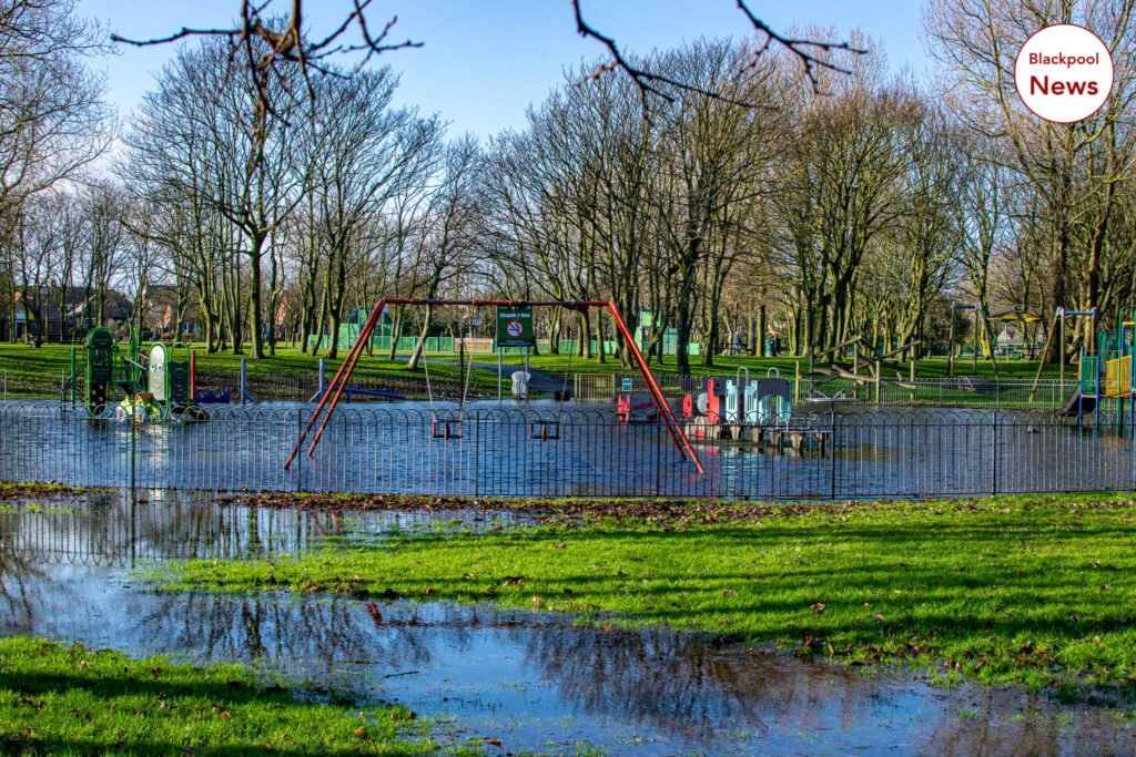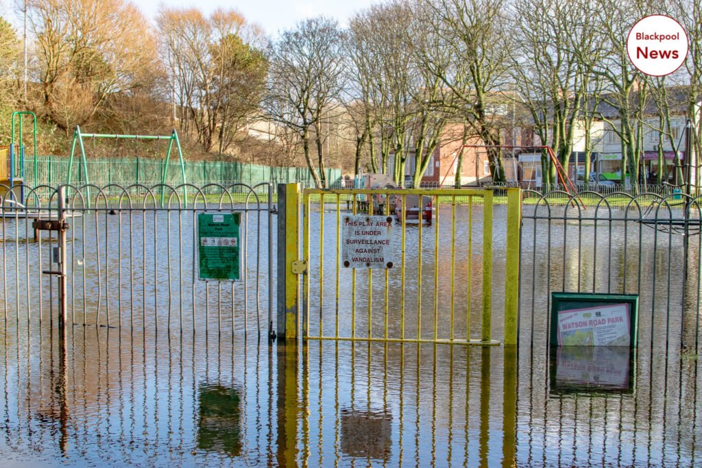 Photos taken yesterday reveal the extent of the waterlogging at Watson Road Park. This is the result of heavy rain caused by storm Cristophe which caused severe issues around the north west.